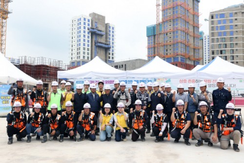 Giám đốc Kim Hyeon Dong và các chuyên gia an toàn đã đến hiện trường công trình xây dựng nhà ở công đồng mà công ty quản lý, tham dự buổi huấn luyện mô phỏng đề phòng mưa lớn và nắng nóng để có thể đối phó nhanh chóng với các tình huống khẩn cấp tại hiện trường xây dựng.