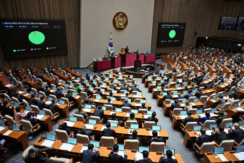 | Tại phiên họp toàn thể Quốc hội ngày 27, dự luật đặc biệt nhằm tăng cường năng lực cạnh tranh của ngành thép và chuyển đổi sang trung hòa carbon (Luật K-Steel) đã được thông qua với 96,08% phiếu tán thành và 1,96% phiếu phản đối../ Asiatoday |