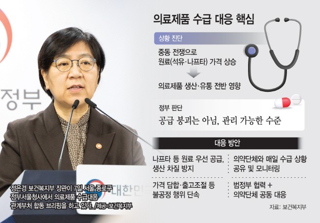 Theo thông tin ngày 8, Bộ trưởng Bộ Y tế và Phúc lợi Jeong Eun-kyung trong buổi họp báo liên ngành về ứng phó nguồn cung sản phẩm y tế hôm trước cho biết: “Chúng tôi sẽ xử lý nghiêm mọi hành vi không công bằng liên quan đến các sản phẩm y tế gắn liền trực tiếp với sức khỏe người dân.” Bà cũng nhấn mạnh rằng sản lượng kim tiêm hiện vẫn ở mức tương đương hoặc cao hơn bình thường, nhằm trấn an lo ngại về bất ổn chuỗi cung ứng do tình hình Trung Đông.